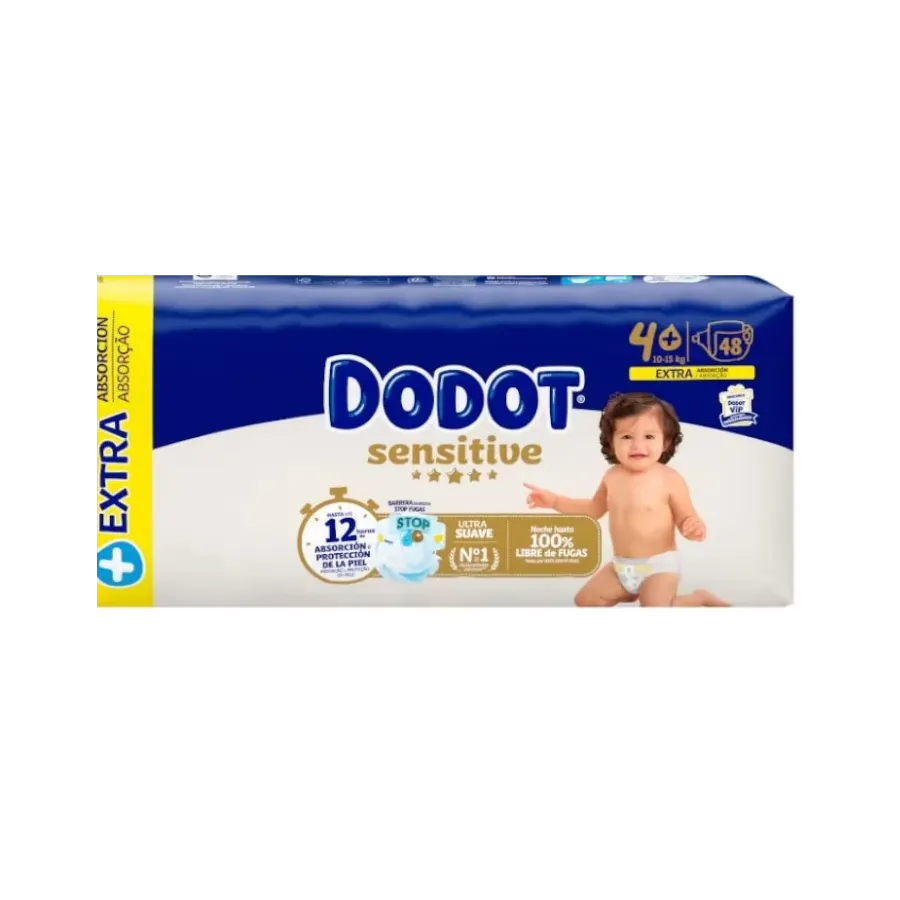 Dodot Sensitive Extra Talla 4+ (9-14 kg) 48 Pañales – Barrera Stop Fugas y Extra Protección