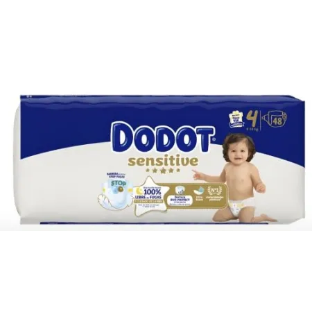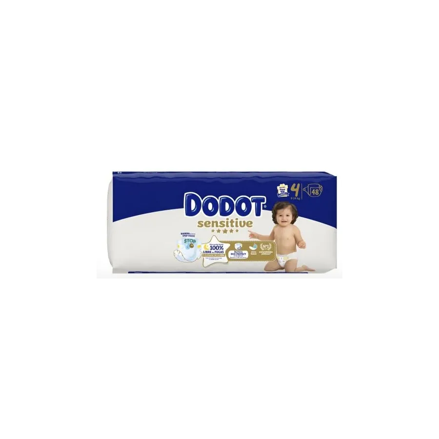Dodot Sensitive Talla 4 (9-14 kg) 48 Pañales – Barrera Stop Fugas y Suavidad Extrema