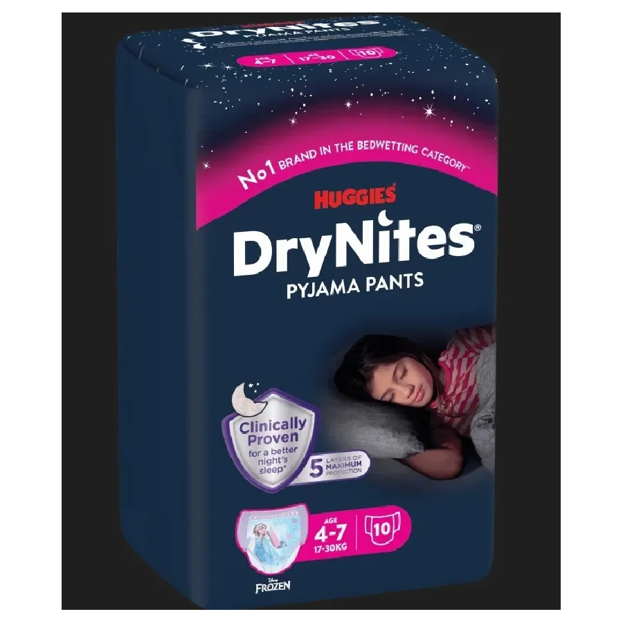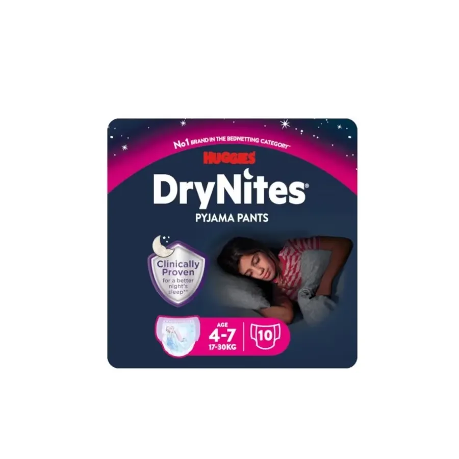Pañales DryNites NIÑA Huggies 4-7 años (17-30 kg) 10 Und