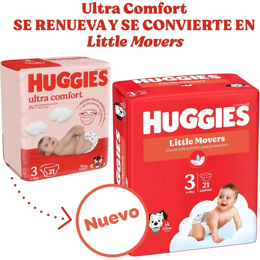 - Dermatológicamente probados: Los pañales Huggies Little Movers son clínicamente probados para garantizar que sean seguros para la delicada piel de tu bebé.