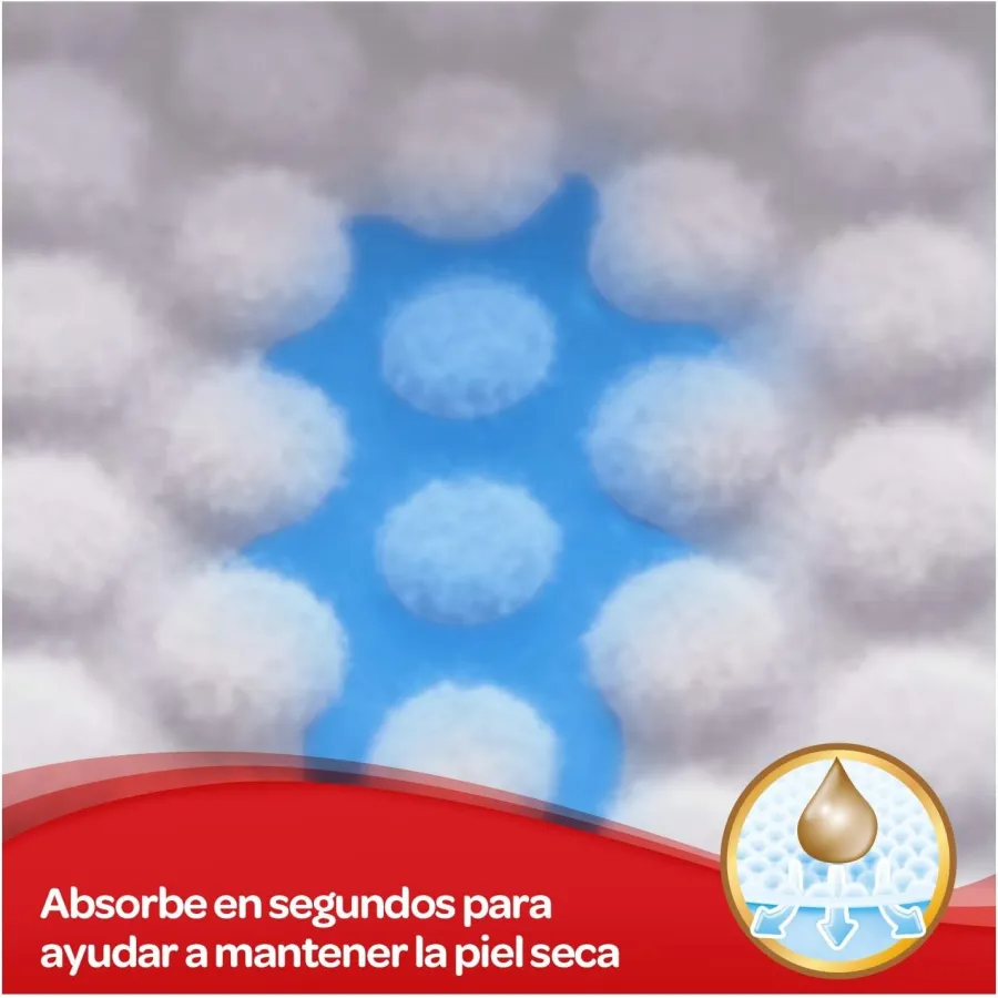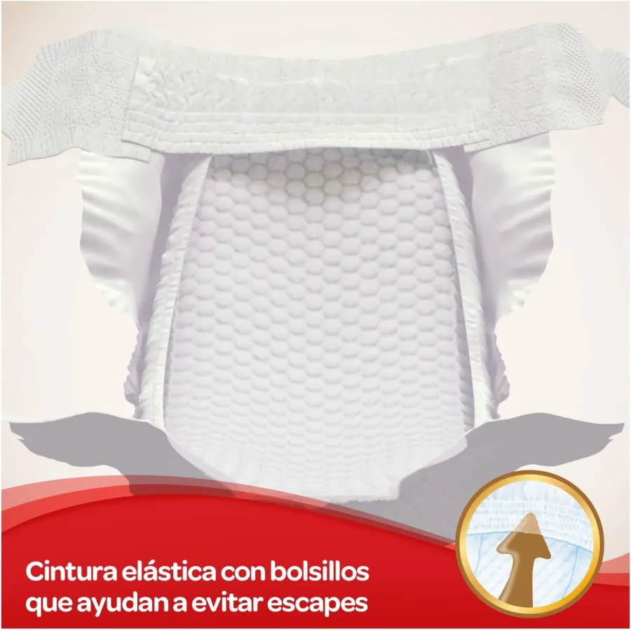 Además, principalmente durante los primeros meses, la piel de un bebé es muy delicada. Por eso, los pañales poseen suaves almohadillas que ayudan a mantener la piel del bebé siempre seca y a protegerlo con una suavidad extrema.