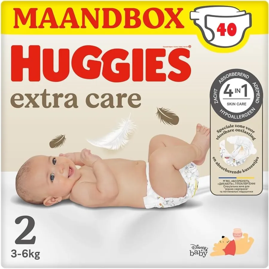 Los pañales Huggies Extra Care Talla 2 están diseñados para proporcionar una protección suave y cómoda para los recién nacidos y bebés de 3 a 6 kg