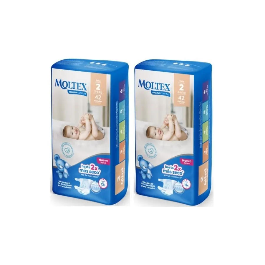 Pañales Moltex Premium Comfort Talla 2 (3-6 kg) . Pack Ahorro 2 X 42