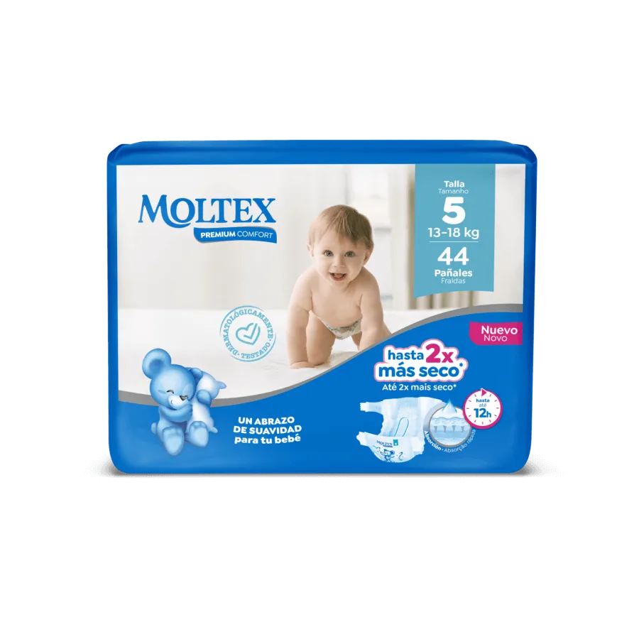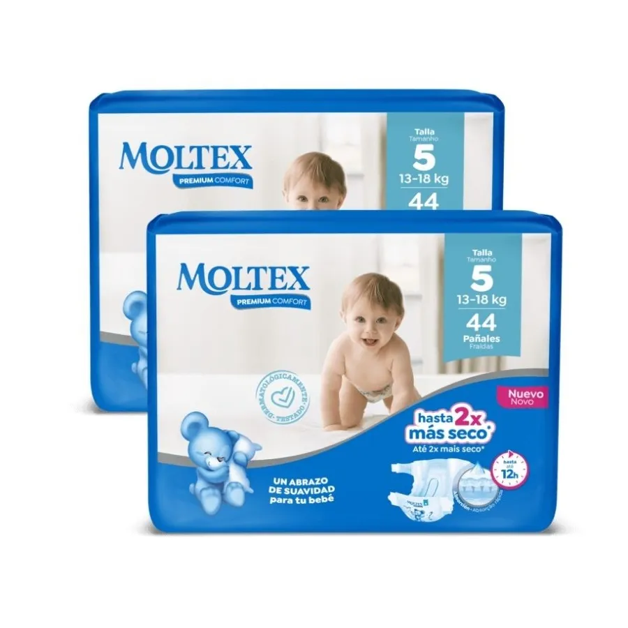 Pañales Moltex Premium Comfort Talla 5 (13-18 kg) . Pack Ahorro 2 x 44