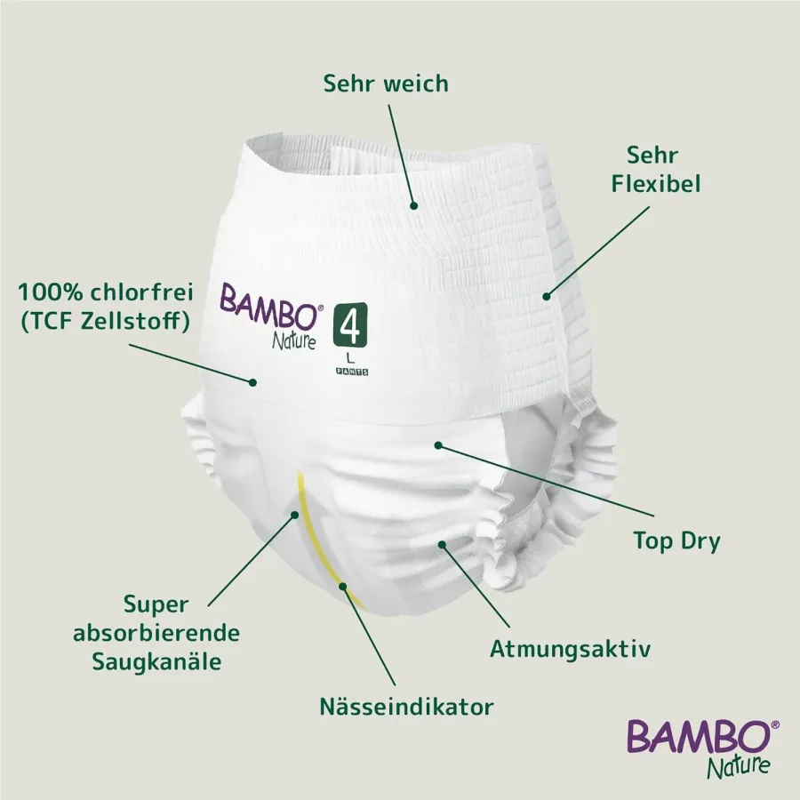 A medida que el niño se acostumbra a usar el baño, los pañales Bambo Nature pueden ser una herramienta útil, ya que permiten una transición suave entre el uso de pañales y el uso del inodoro.