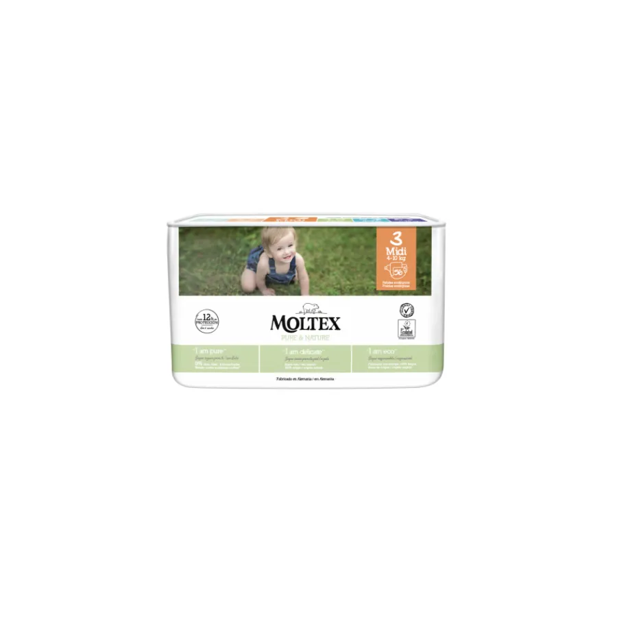 Pañales Pure & Nature Talla 3 (4 a 10 kg) 56 Uds. Moltex