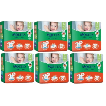 Pañales Talla 4 Extra Dry Moltex (9 a 14 kg). Pack Ahorro 6 x 30