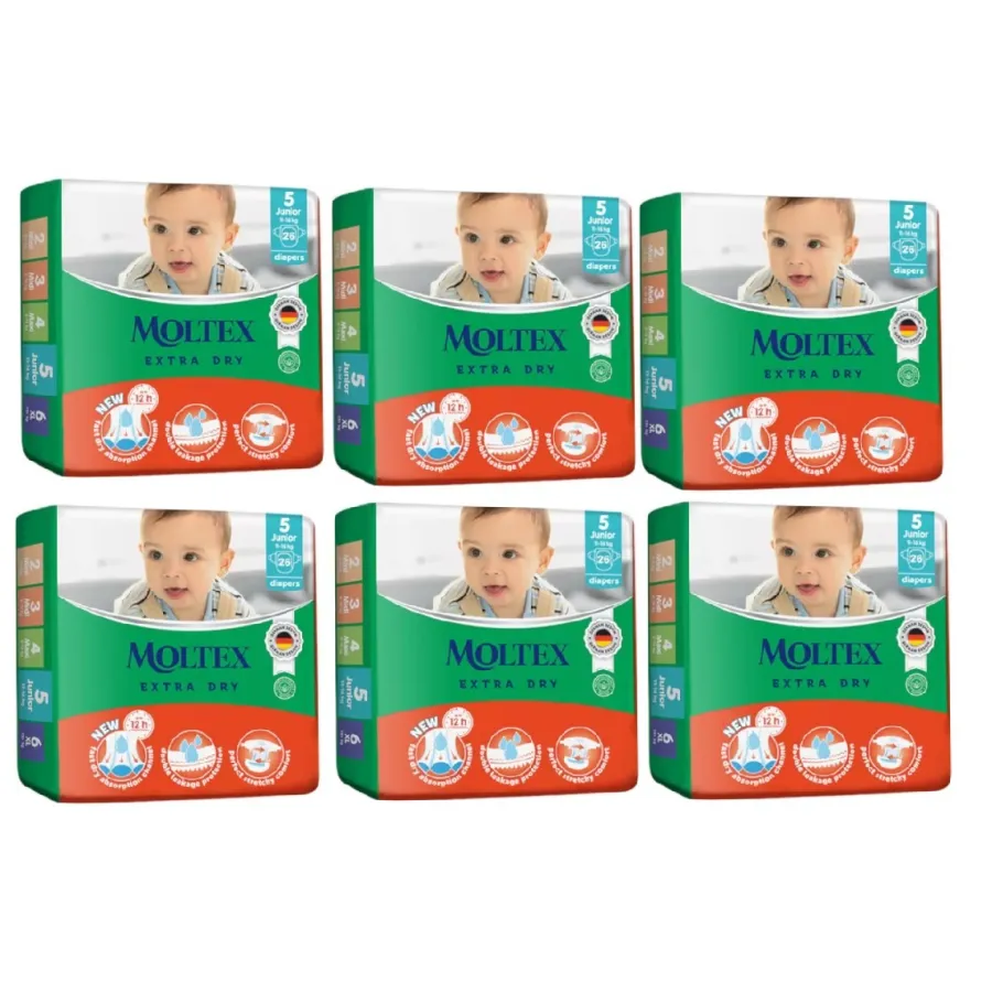 Pañales Talla 5 Extra Dry Moltex (11 a 16 kg) . Pack Ahorro 6 x 26