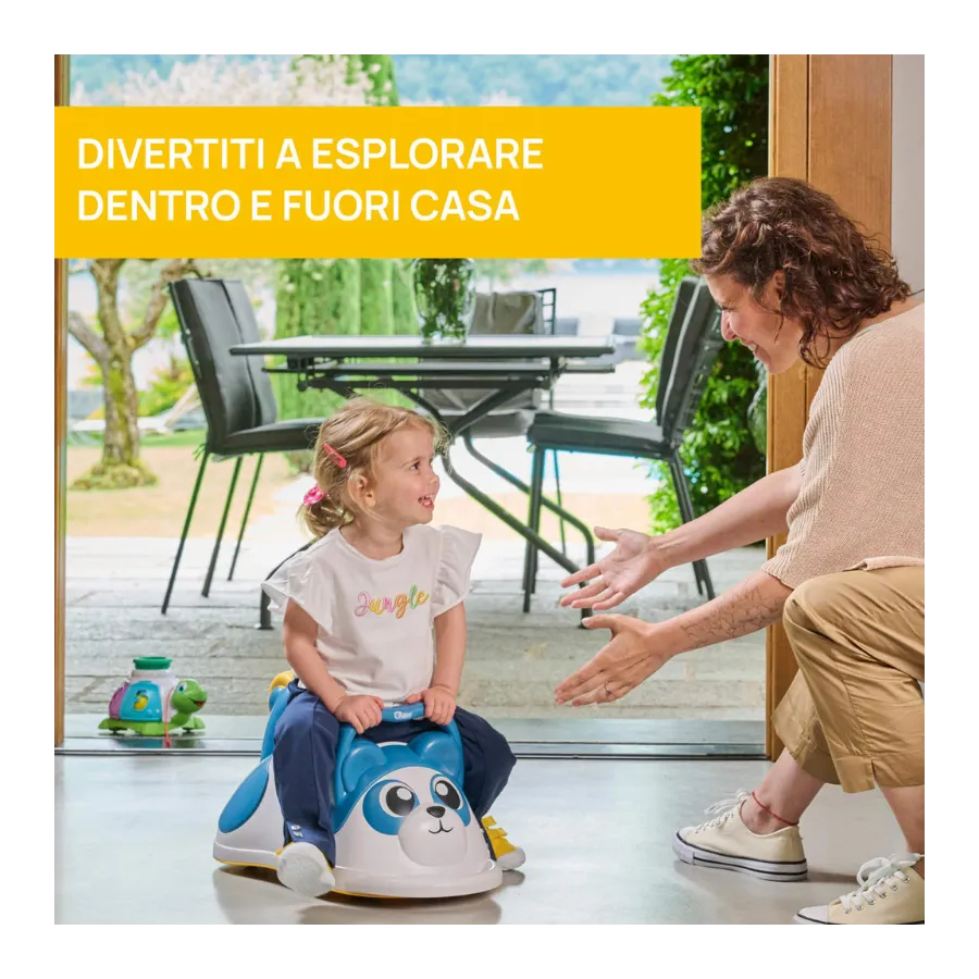 El Panda 3 en 1 Chicco es mucho más que un correpasillos. Es un juguete evolutivo que se transforma en tres funciones diferentes según la etapa de tu bebé: andador para primeros pasos, correpasillos y centro de actividades educativas. Ideal desde los 9 meses hasta los 2 años, este juguete estimula la coordinación, el equilibrio y la psicomotricidad de forma lúdica.