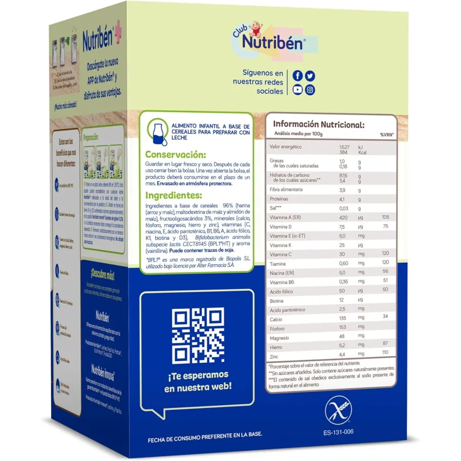 Ingredientes: Nutribén innova Zero% Cereales sin gluten son fuente de fibra, gracias a que contiene prebióticos FOS. Además, contiene el postbiótico BPL1HT*. Está enriquecida con 11 vitaminas y minerales. Sin trazas de leche. Recomendamos prepararse con leches de inicio Nutribén Innova TOProtein 1 o Nutribén Natal Pro-α. Nuestros cereales sin gluten son los únicos en el mercado avalados por la FACE, Federación de Asociaciones de Celiacos de España