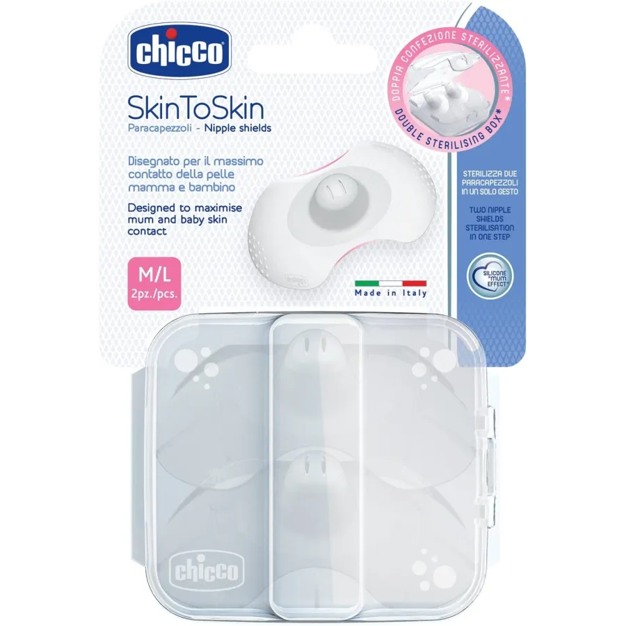 Estás fantásticas pezoneras piel con piel de Chicco están fabricadas con silicona extrafina transmitiendo el calor y el olor de la mamá. Favorecen el agarre natural del pezón aportando una protección extra.
