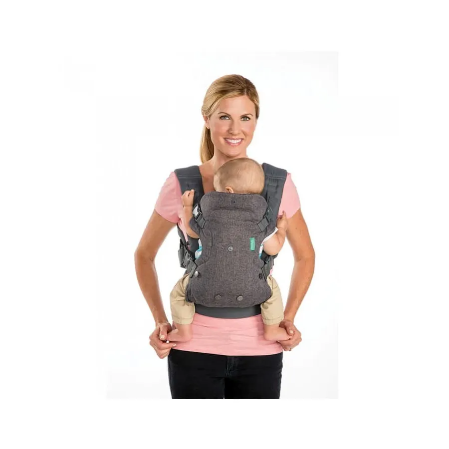 El Portabebé Flip Ergo 4 en 1 de Infantino permite transportar al bebé en el vientre o en la espalda muy cerca de ti, aportándole seguridad y tranquilidad ¡mientras tú dispones de las manos libres! El olor, el calor y la protección de la persona que lo portea enriquece el vínculo y el apego seguro.
