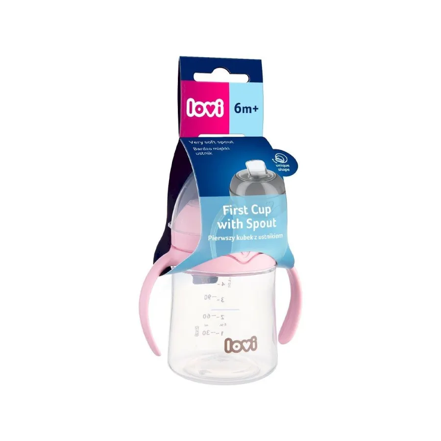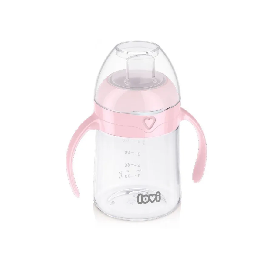 La primera taza con boquilla Lovi, gracias a la innovadora tetina con forma de chuchara, es la mejor opción para una transición del biberón o pecho al vaso segura y cómoda para el peque y para ti.