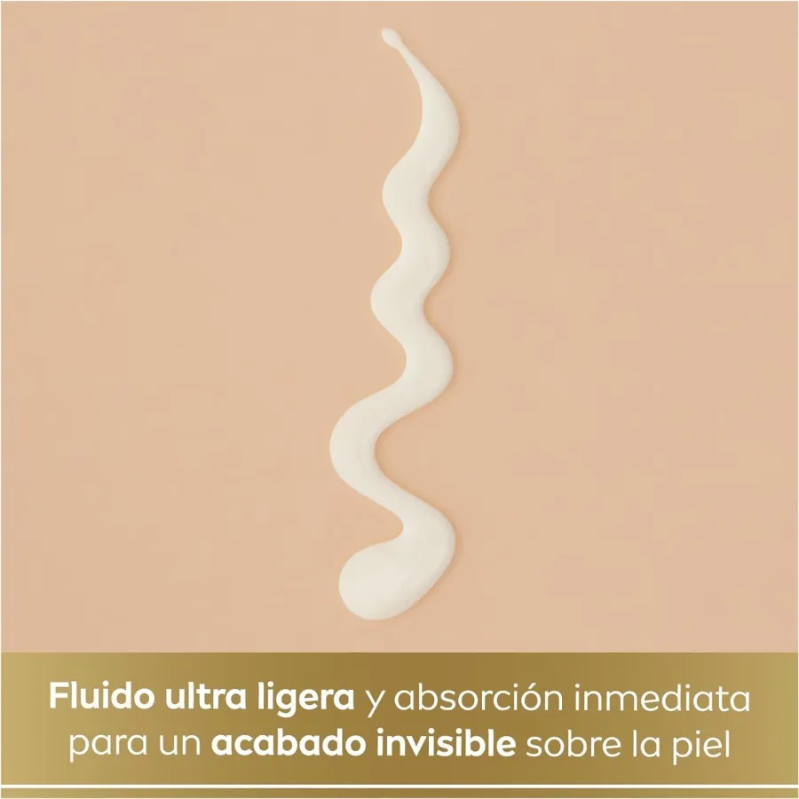 Esta innovadora fórmula de triple protección facial enriquecida con ácido hialurónico es un fluido ultraligero que combate los efectos nocivos de la luz azul, los rayos solares y la polución. Cuenta con un factor de protección SPF 50+ combatiendo el envejecimiento prematuro de la piel.