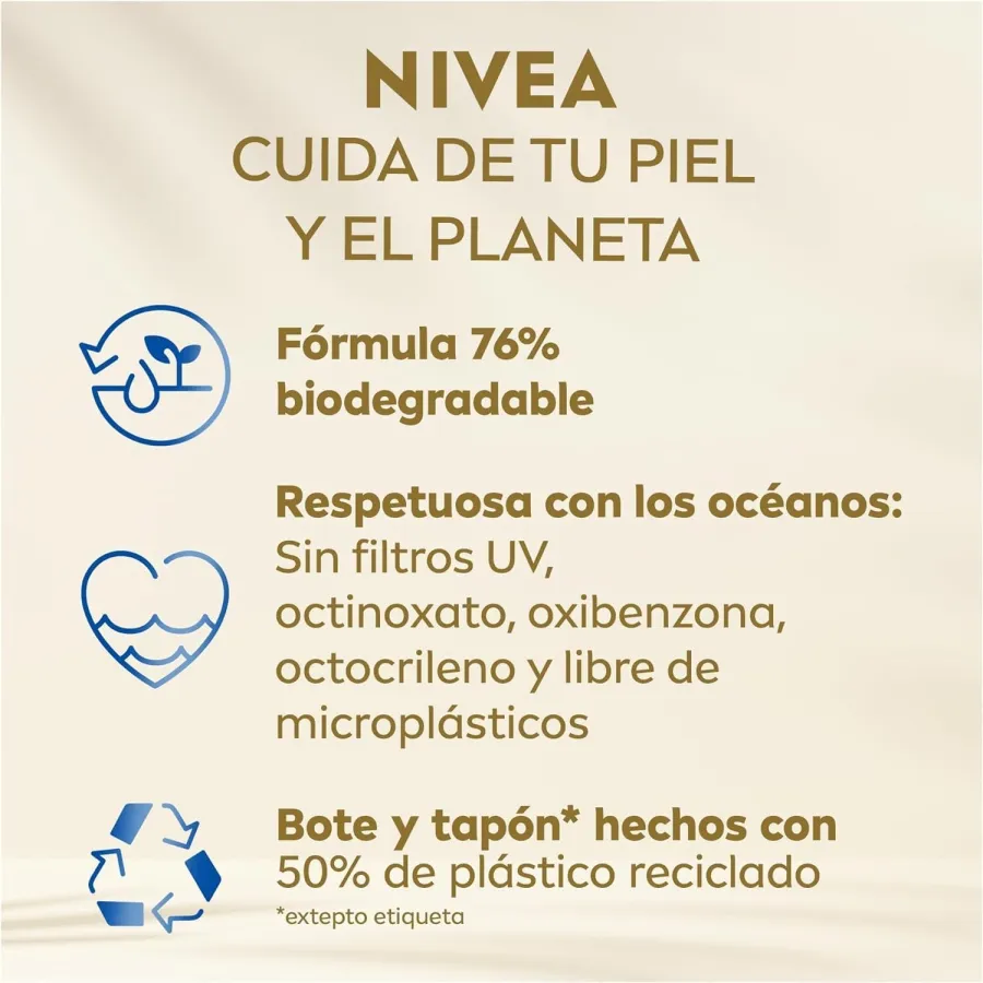 La nueva fórmula triple acción de Nivea combina un alto nivel de protección con la eficacia del ácido hialurónico para que tu piel se vea más luminosa que nunca. Aplícala a diario como barrera antiradiación, antipolución y antiluz azul además de como fuente de hidratación prolongada y disfruta de un rostro joven y terso visiblemente más suave y liso.