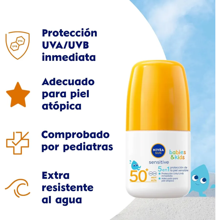 Protección solar Roll On Babies&kids sensitive SPF 50+ (50ml). Nivea