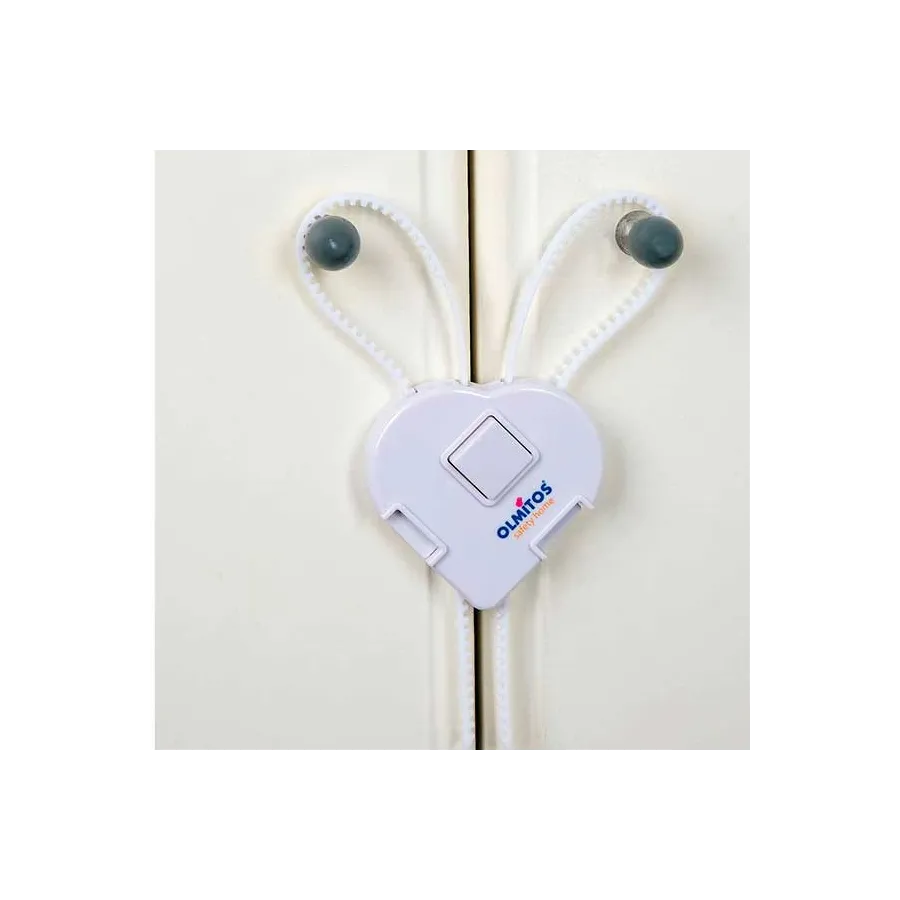 Protector flexible armarios de Olmitos sistema de bloqueo que evita que tu pequeña abra las puertas y pueda verse en apuros o lastimarse.
