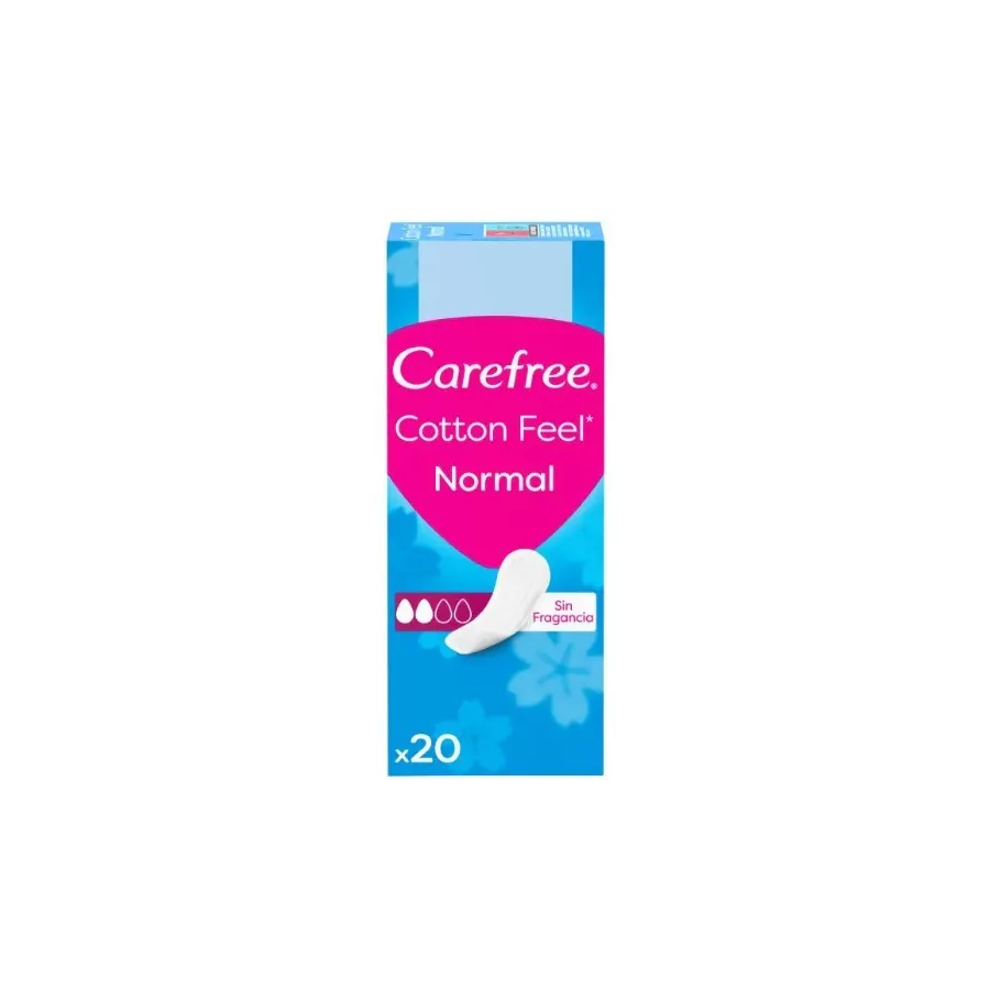 El protege slip Carefree Normal es perfecto para el uso diario. Absorbe el flujo impidiendo las manchas en la ropa interior y neutralizando la humedad y el olor. Gracias a su composición con extracto de algodón y que son 100% transpirables brindan un tacto extrasuave y respetuoso cuidando la piel de la zona íntima. Su forma anatómica se adapta al cuerpo aportando una mayor comodidad en el día a día y son tan finos que no notas que los llevas. Cuentan con una alta adherencia para evitar que se muevan y se deformen. Todas estas ventajas lo convierten en la mejor opción para la higiene diaria de la mujer. Paquete de 20 unidades.