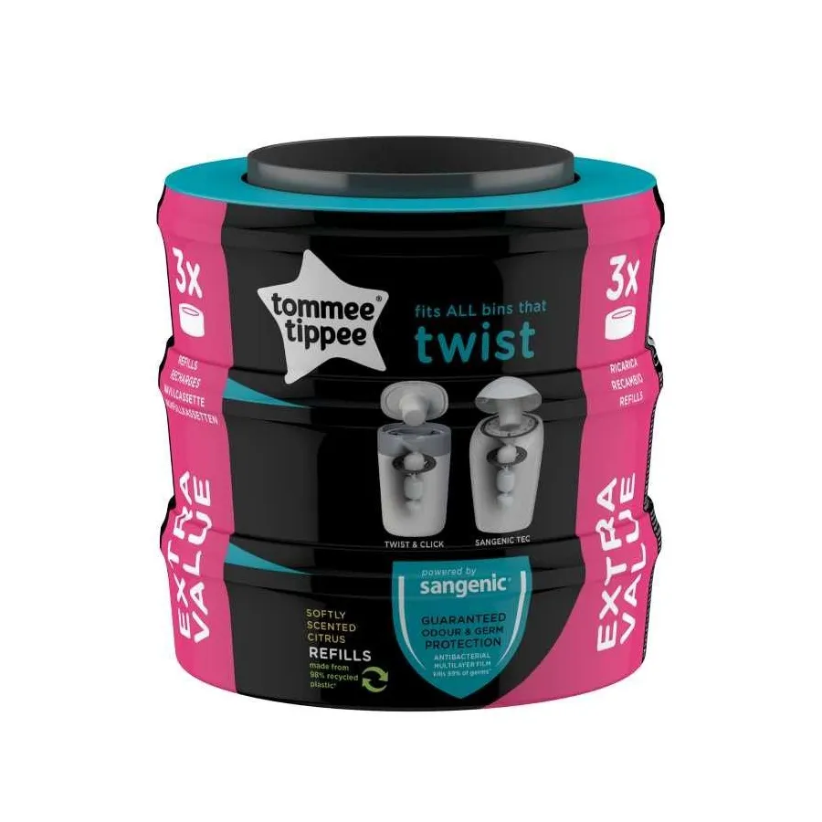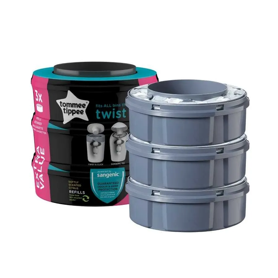 Los recambios Sangenic Twist & Click x 3 de Tommee Tippee envuelven los gérmenes y olores en una porción de film multicapa antibacteriana.