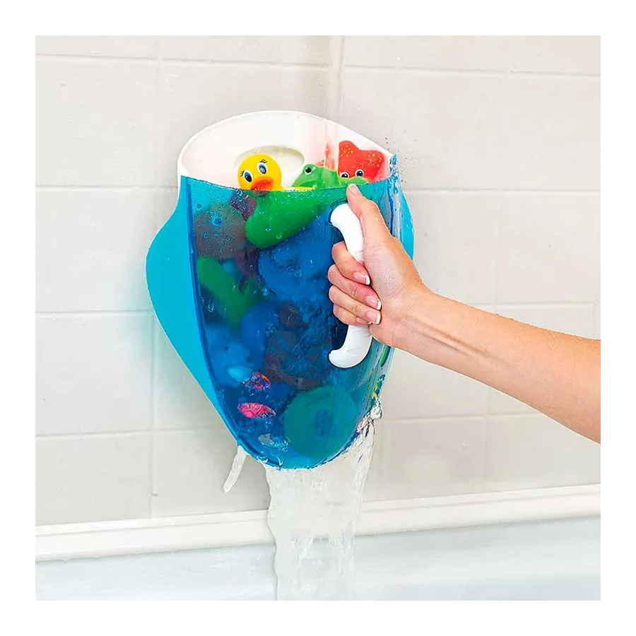 Su diseño en forma de taza grande, con una asa , lo que te permite descolgarlo de la pared y así pasarlo por el agua y recoger todos los juguetes, sus grandes orificios te permiten enjuagar y escurrir todos los juguetes a la vez, lo que reduce la formación de moho y ayuda a tenerlos todos guardados.