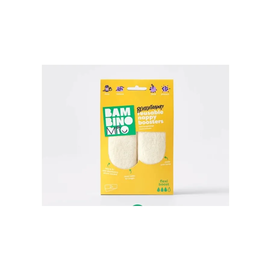 Mini boost: nuestro refuerzo más ligero proporciona una capa suave de protección diaria que no añade volumen a los glúteos. Las capas inteligentes y absorbentes de tela de bambú absorben rápidamente la humedad y la mantienen alejada de la piel. Daily Boost: una excelente solución diaria que funciona bien durante las noches y también en viajes largos. Está fabricado con bambú absorbente y microfibra de secado rápido. Flexi boost: este inteligente compañero no solo está hecho de cáñamo muy absorbente, sino que también es extralargo, lo que lo convierte en el refuerzo más versátil de nuestra gama. Dóblalo dentro del pañal de la forma que más te convenga; especialmente ideal para niños y personas que duermen de frente.