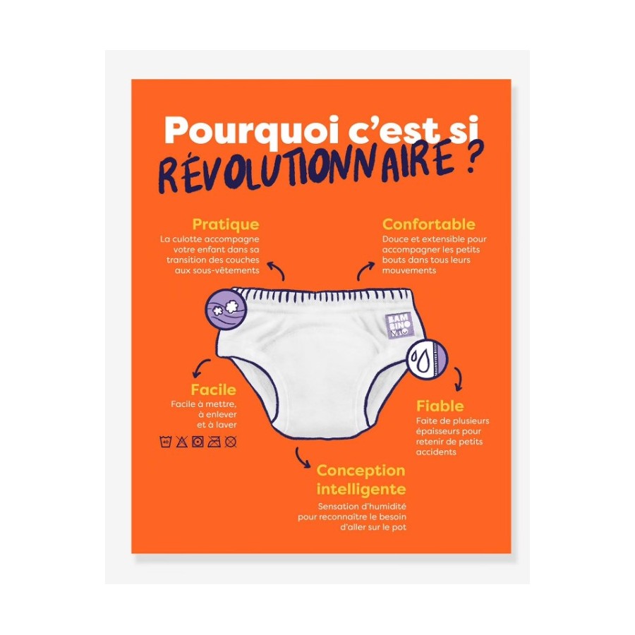 Si ves que tu peque se mantiene seco durante la siesta, te pide que lo cambies a menudo y hace gestos para usar el orinal es el momento para que permitas que el pañal de aprendizaje de Bambino te ayude con el último empujón para decir adiós a los pañales. Este revolucionario pañal reutilizable entrena a tu peque para dar el paso a la ropita interior fácilmente. Ofrece una gran comodidad, suavidad y absorción para pequeños accidentes ¡Ocurrirán! Muy fácil de limpiar, poner y quitar. ¡