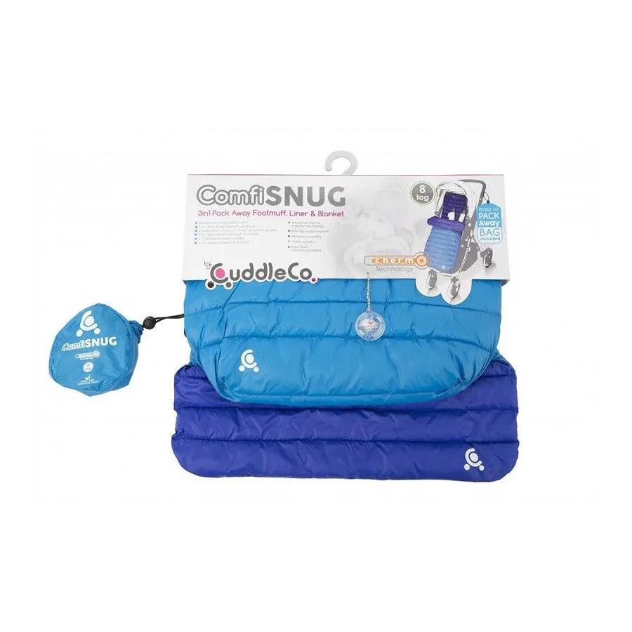 Saco comfi snug azul de Cuddleco. Saco ligero 3 en 1: Saco de silla, revestimiento cochecito y mini edredón o mantita de paseo.