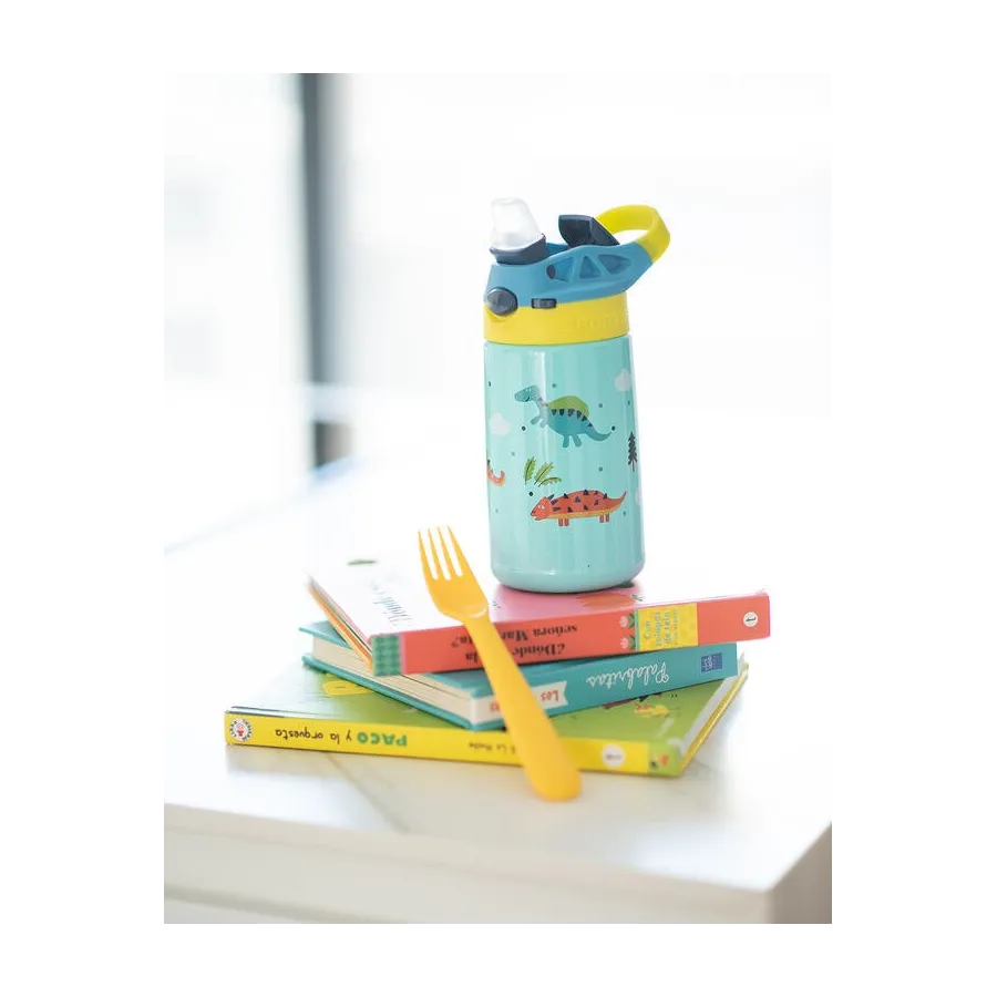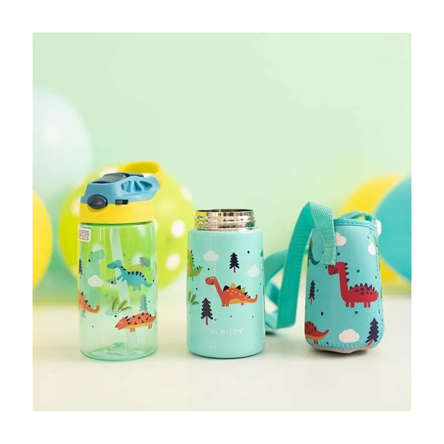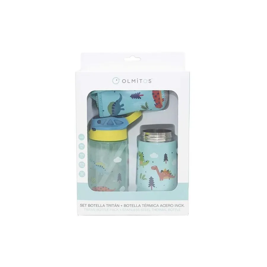 Este set de botellas de Olmitos permite usarlo a conveniencia ofreciendo lo que necesitas en cada situación para que no tengas que preocuparte. Cuenta con un diseño divertido con motivos dinosaurio que le encanta a los más pequeños. Ideal para que puedan beber solitos fácilmente.