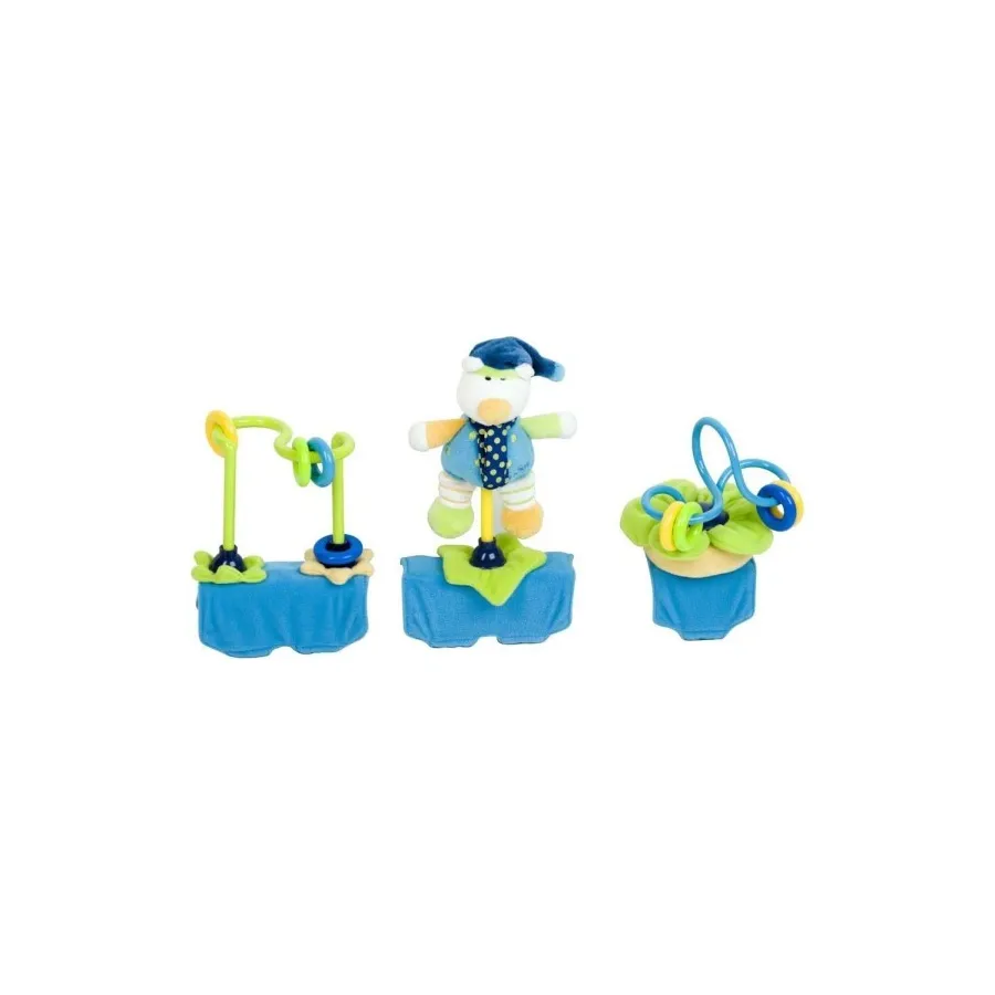 Divertido set de tres juguetitos para llevar como accesorio en la silla de paseo o en la hamaca de tu bebé, trae un sistema de velcro para fijarlo fácilmente a la barra. Está diseñado en diferentes texturas, divertidos colores y formas lo que aportará gran estimulación a los sentidos del tacto, oído y vista de tu peque; además de entretenerlo durante los paseos largos.