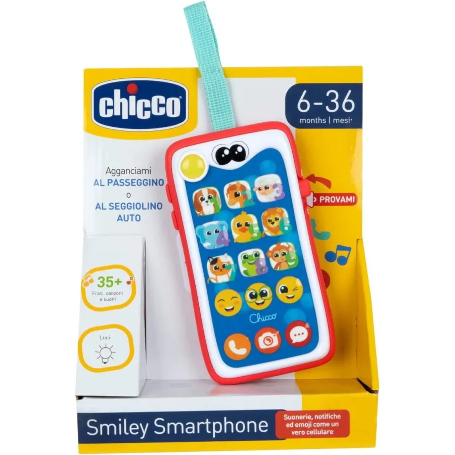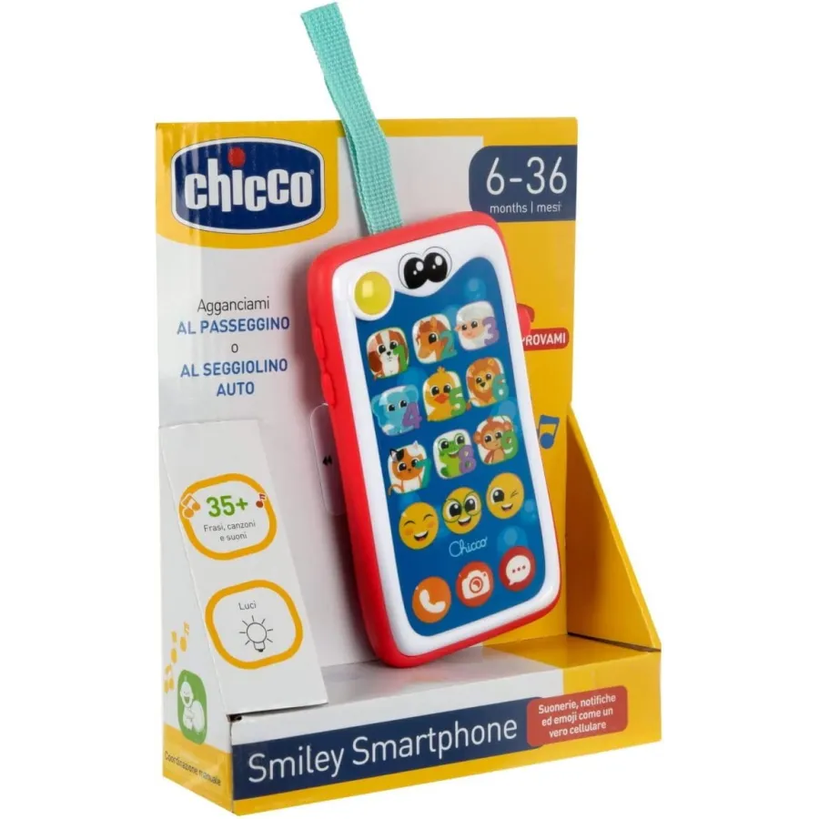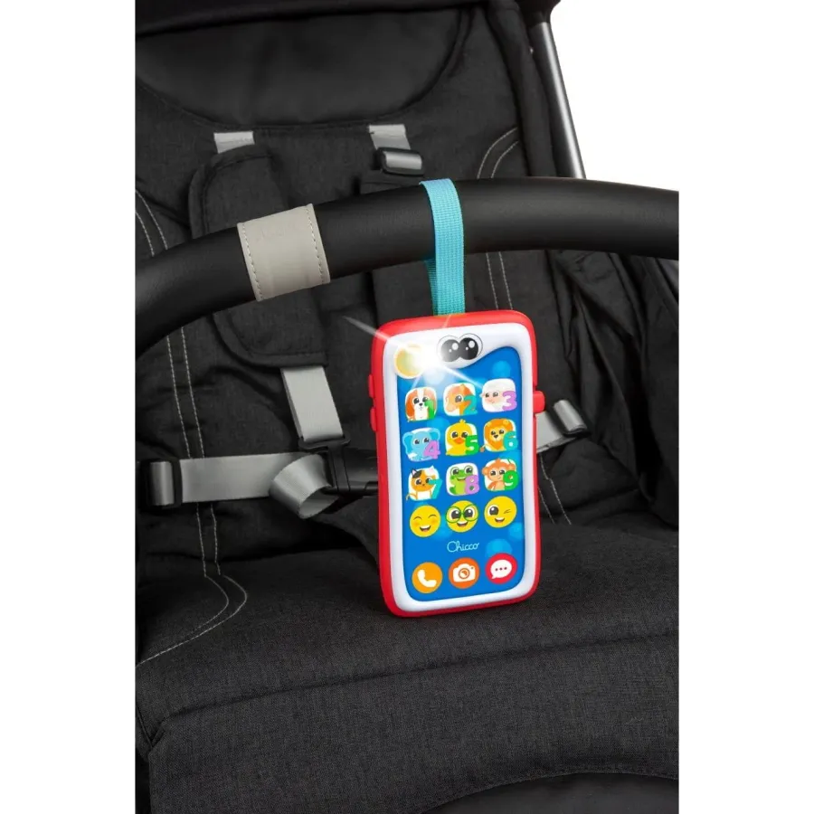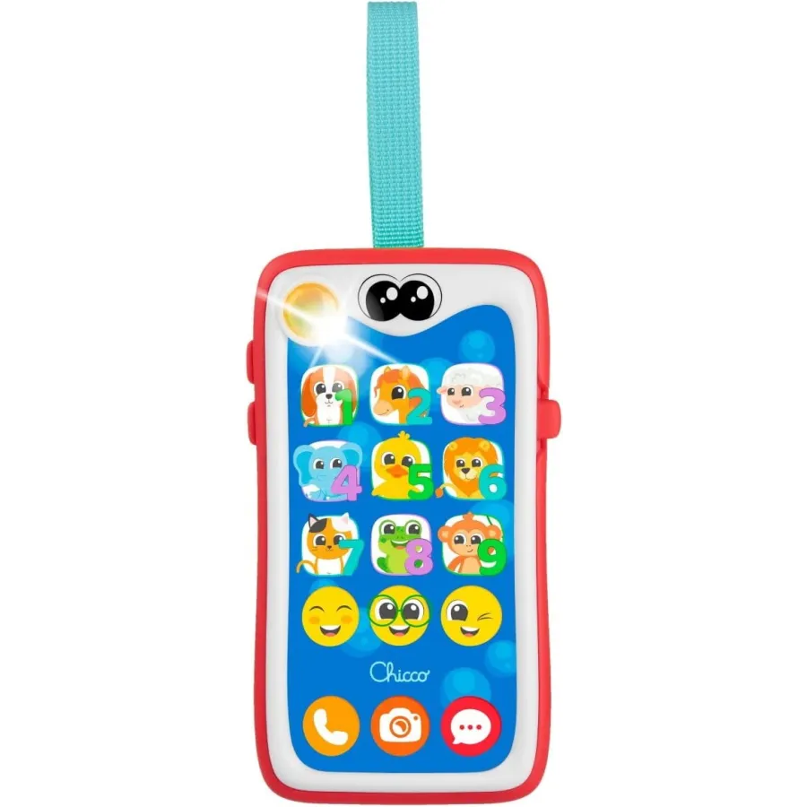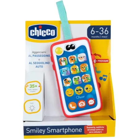 Chicco nos presenta el primer smartphone educativo. Si tu bebé es muy curioso y le llaman mucho la atención los smartphone este es el juguete que estás buscando. Cuenta con más de 35 luces y sonidos que acciona pulsando los 15 botones y 25 canciones en inglés y español para aprender. Enseña los números hasta al 9, los animales y los sonidos en los dos idiomas. Tiene botón de cámara que simula sacar fotos y tomos de llamada, notificaciones y emoji como los teléfonos de los mayores.