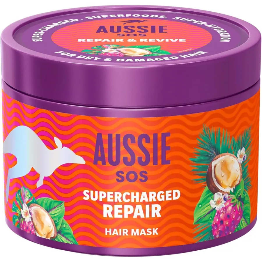 Ya sea por tintes, planchas o simplemente sequedad ambiental, el cabello tratado necesita cuidados específicos. Aussie SOS Supercharged Repair es una mascarilla capilar ideal para quienes buscan un tratamiento reparador intensivo y vegano.
