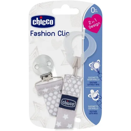 Evita la pérdida del chupete con este fabuloso clip de Chicco. El diseño reversible lo convierte en un 2 en 1 combinable con las prendas del bebé. El chupete siempre a mano para cuando el bebé lo demande. El broche se engancha fácilmente y puede utilizarse en chupetes con o sin anilla. Disponible en 3 colores.