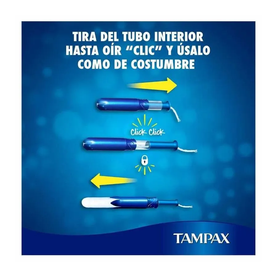 Los tampones TAMPAX Compak Súper cuentan con un aplicador suave y compacto para una mayor discreción. Gracias a su falda protectora antifugas, te brindan hasta ocho horas de protección TAMPAX para que te sientas limpia y puedas hacer lo que quieras. Posee aplicador retráctil, por lo cual siempre un tamaño compacto para que lo lleves a cualquier parte.