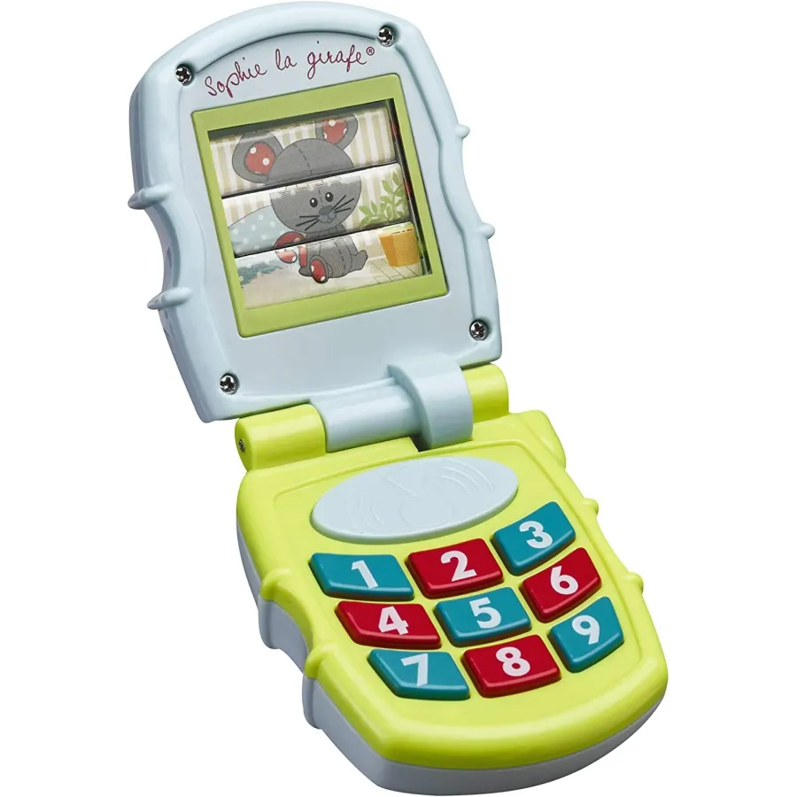 Este precioso teléfono musical está pensado para bebés de 3 meses en adelante. Cuenta con una válvula para abrir y cerrar siempre que el bebé quiera. Dispone de las imágenes de Sophie la girafe, Josefina la ratoncita y el oso Gabino que salen aleatoriamente y por sorpresa. Los colores llamativos, las luces y los diferentes sonidos de las teclas llaman mucho la atención del bebé favoreciendo el desarrollo de los sentidos y el conocimiento del mundo que le rodea. Gracias a las 5 melodías despertará el oído musical mientras se divierte. ¡No dudes en mantener conversaciones con él, le ayudarás a lanzarse a hablar con más seguridad! Disponibles en 3 modelos diferentes.