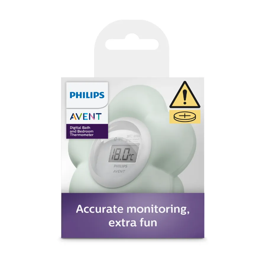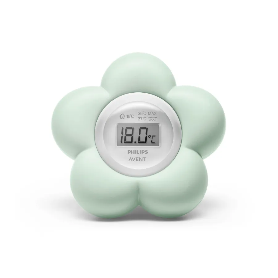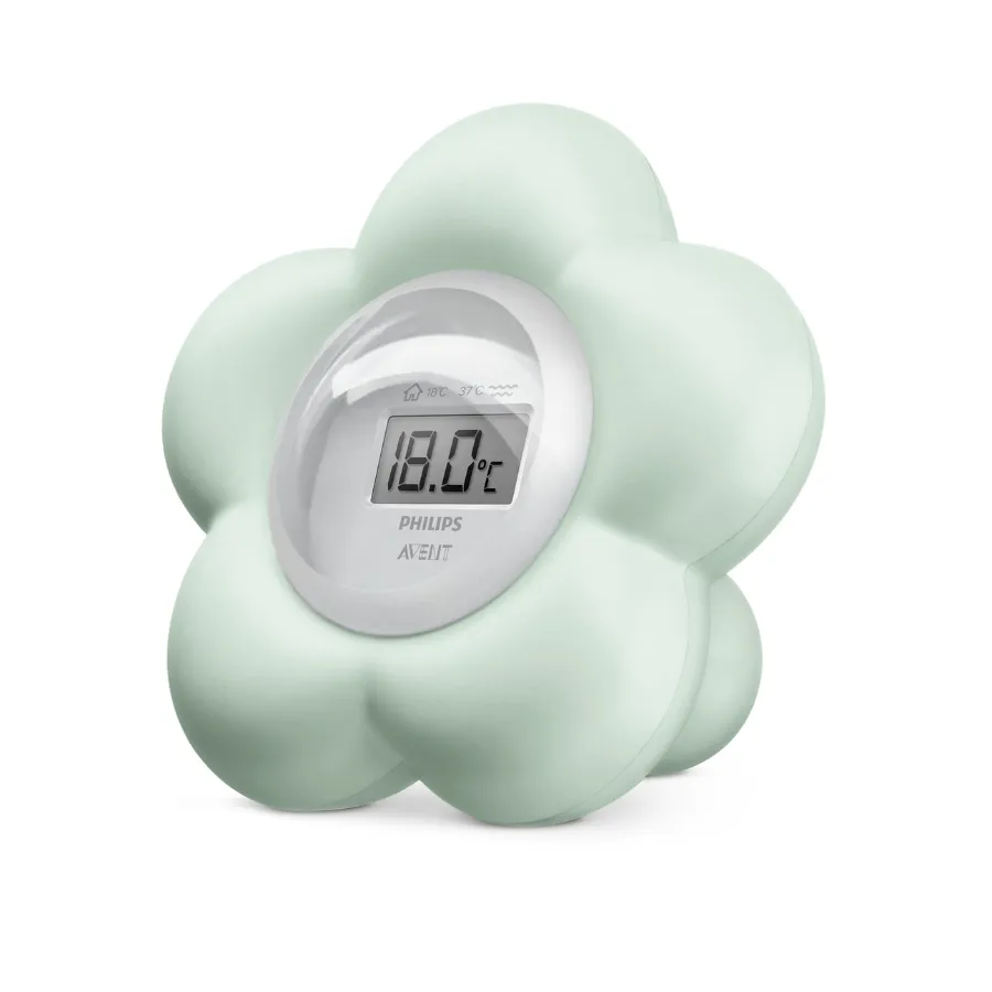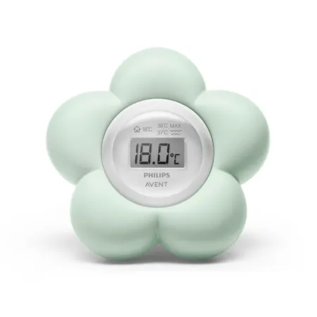 El Termómetro baño y dormitorio verde neutro Philips Avent, fabricado por Philips Avent, marca líder en puericultura respaldada por Philips, combina diseño, seguridad y funcionalidad en un solo dispositivo.