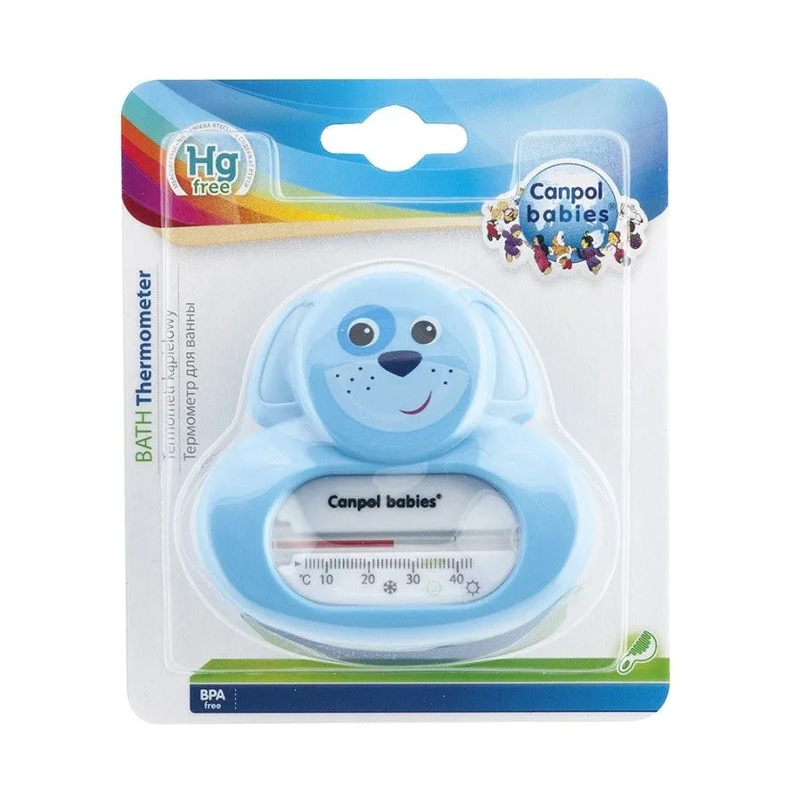 Este práctico termómetro de baño de Canpol no contiene mercurio para total seguridad de tu bebé.