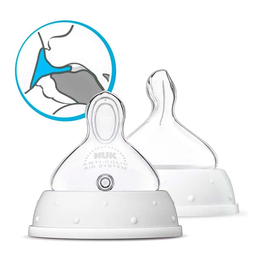 Con su único y exclusivo sistema de ventilación NUK AIR SYSTEM mejorado que previene los cólicos.