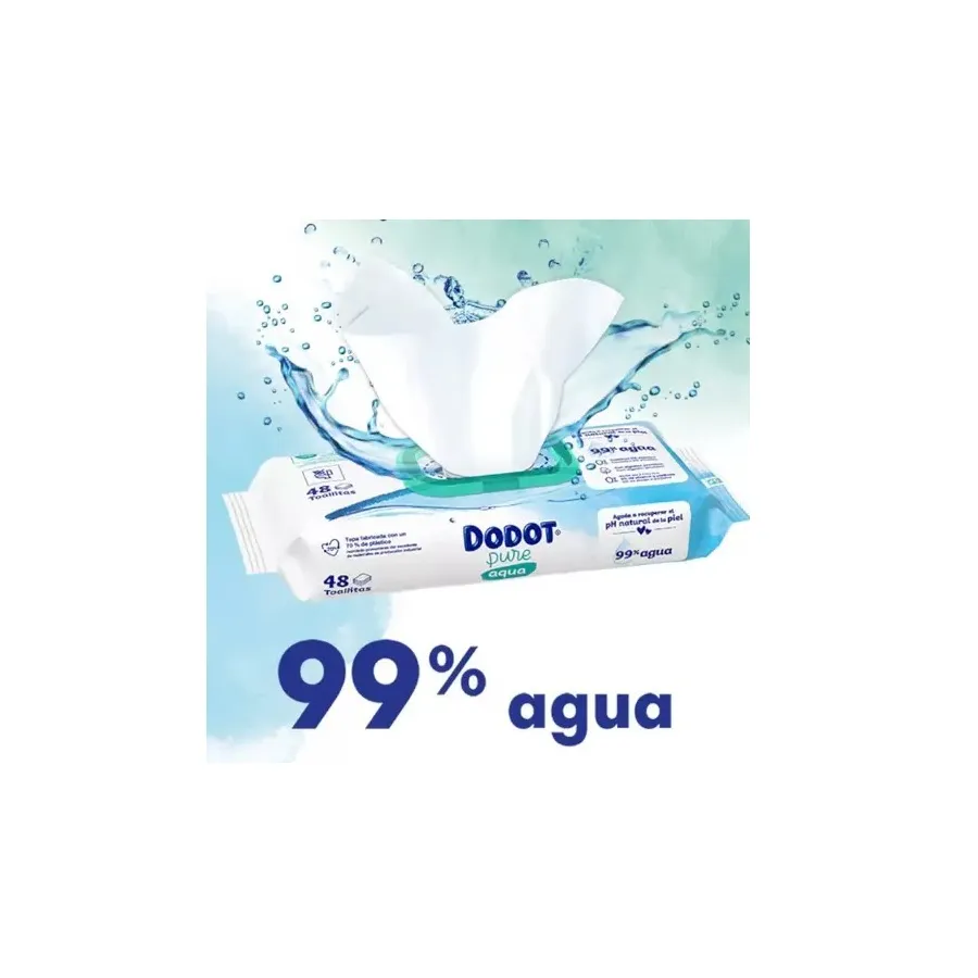 Las toallitas Aqua Pure Dodot están elaboradas con un 99% de agua para una limpieza delicada de la piel de tu bebé. El 1% restante incluye ingredientes delicados con la piel que ayudan a recuperar el pH natural y previenen de irritaciones. Además, contienen algodón premium para que el contacto con la piel del bebé sea muy suave. Estas toallitas son apropiadas para la piel desde el primer día y han sido testadas dermatológicamente.