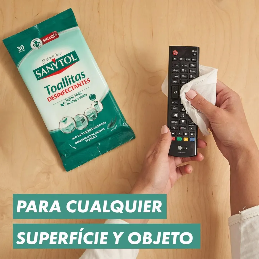 Además de eliminar el 99.9% de los gérmenes y bacterias, las toallitas desinfectantes de Sanytol también ayudan a eliminar los malos olores, dejando un aroma fresco y agradable en las superficies tratadas.