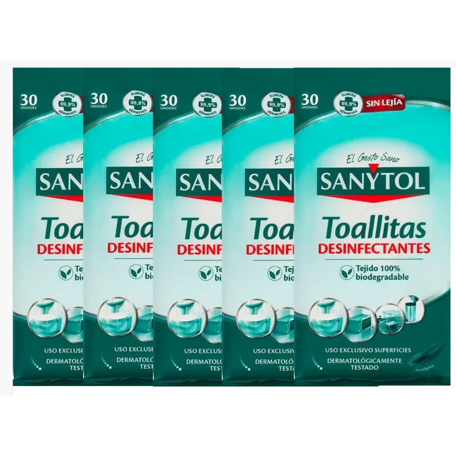 Toallitas desinfectantes sin lejía, Pack 5x30 uds. Sanytol