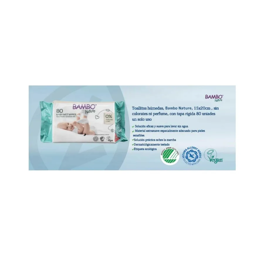 Las toallitas húmedas Bambo Nature son una excelente opción para la higiene y cuidado de la piel de los bebés