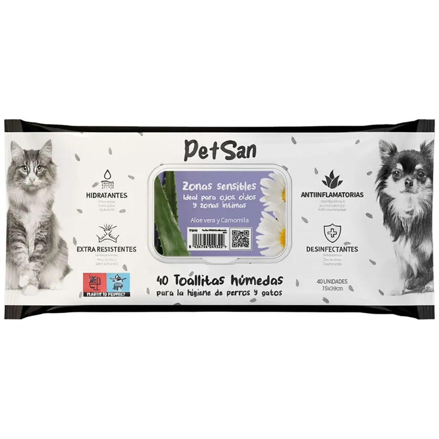 Toallitas PETSAN Aloe & Camomila 40 Unidades | Toallitas Higiénicas para Perros y Gatos