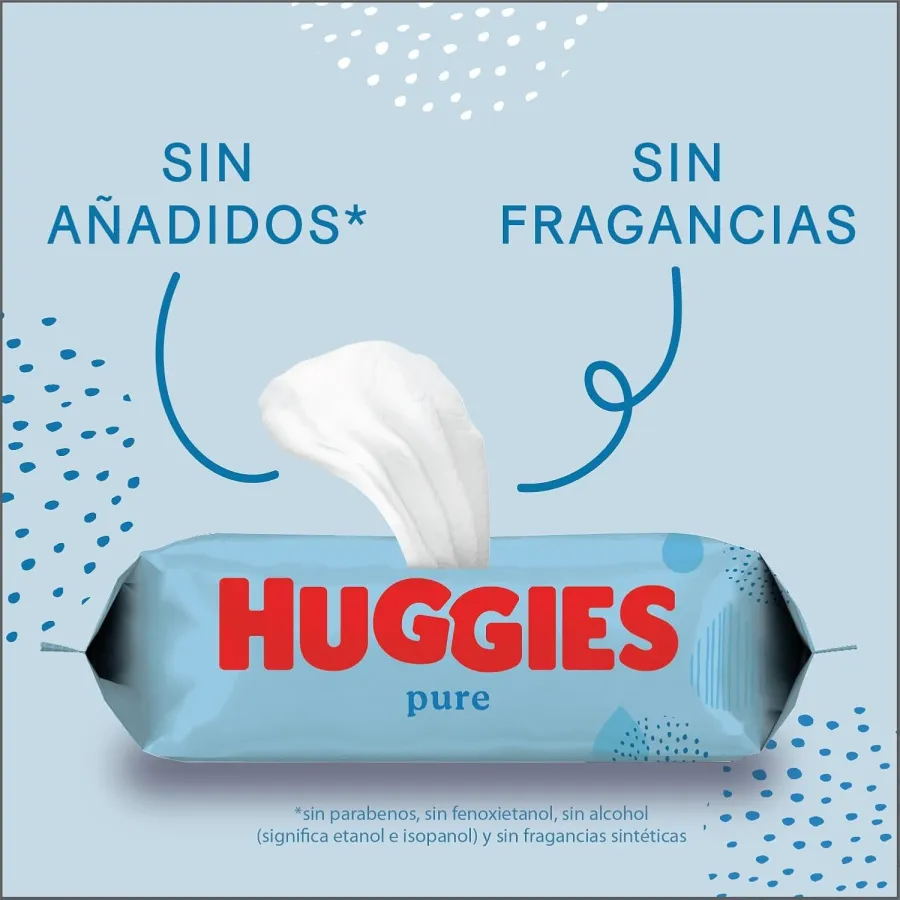 ¡La suavidad y frescura que tu bebé merece, siempre a tu alcance con Huggies Puré!".