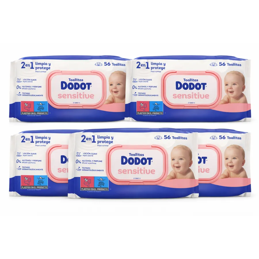 Pack Toallitas Dodot Sensitive Sin Perfume 5x56 (280 uds) – Limpieza Suave y Protección Diaria