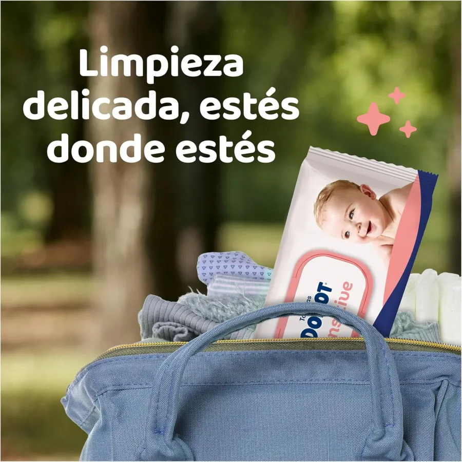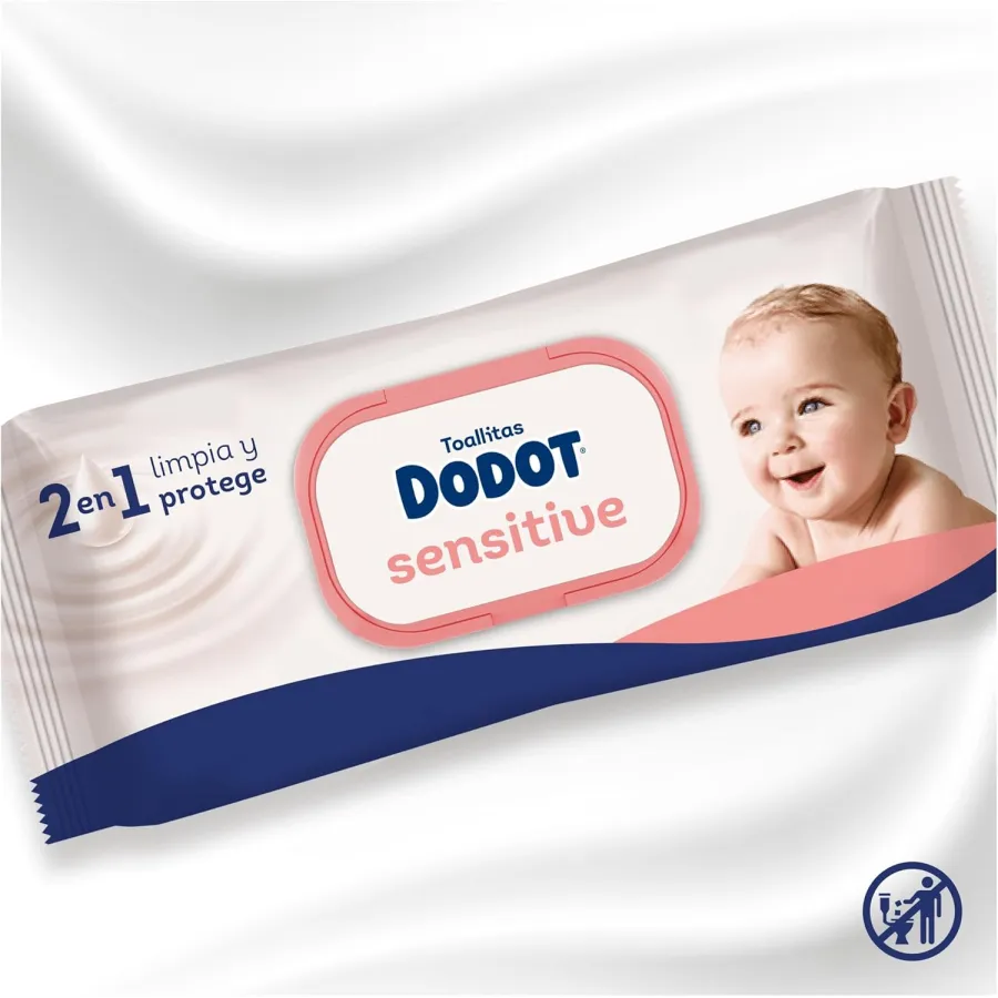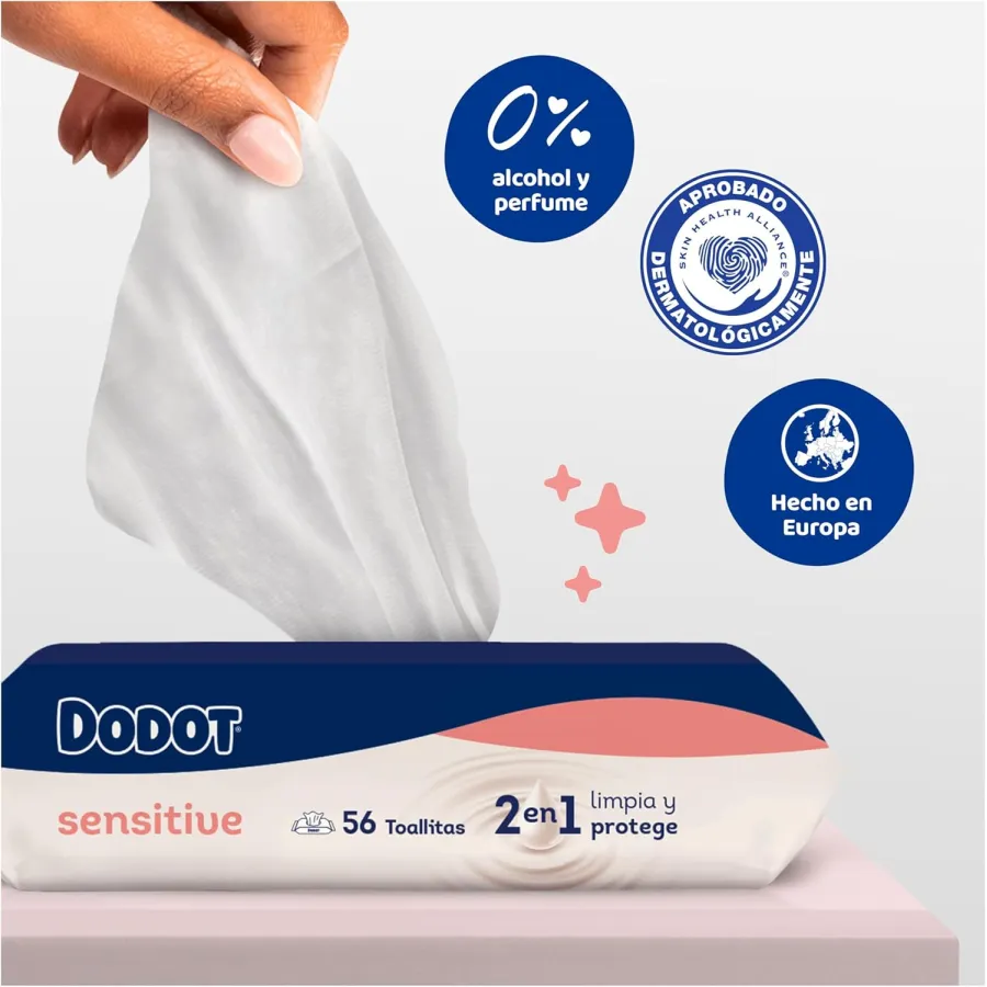 Las toallitas Dodot Sensitive sin perfume están especialmente diseñadas para limpiar la piel delicada del bebé de forma suave y eficaz. Gracias a su fórmula sin alcohol ni perfume, ayudan a proteger frente a irritaciones, siendo ideales incluso para recién nacidos.