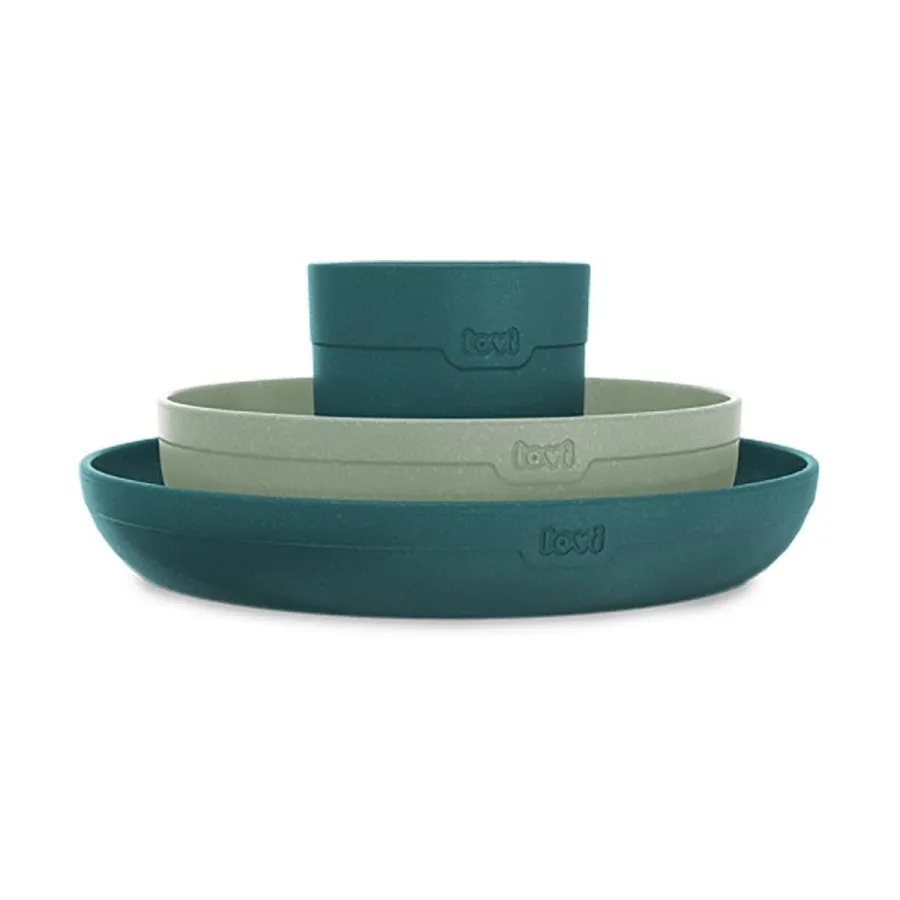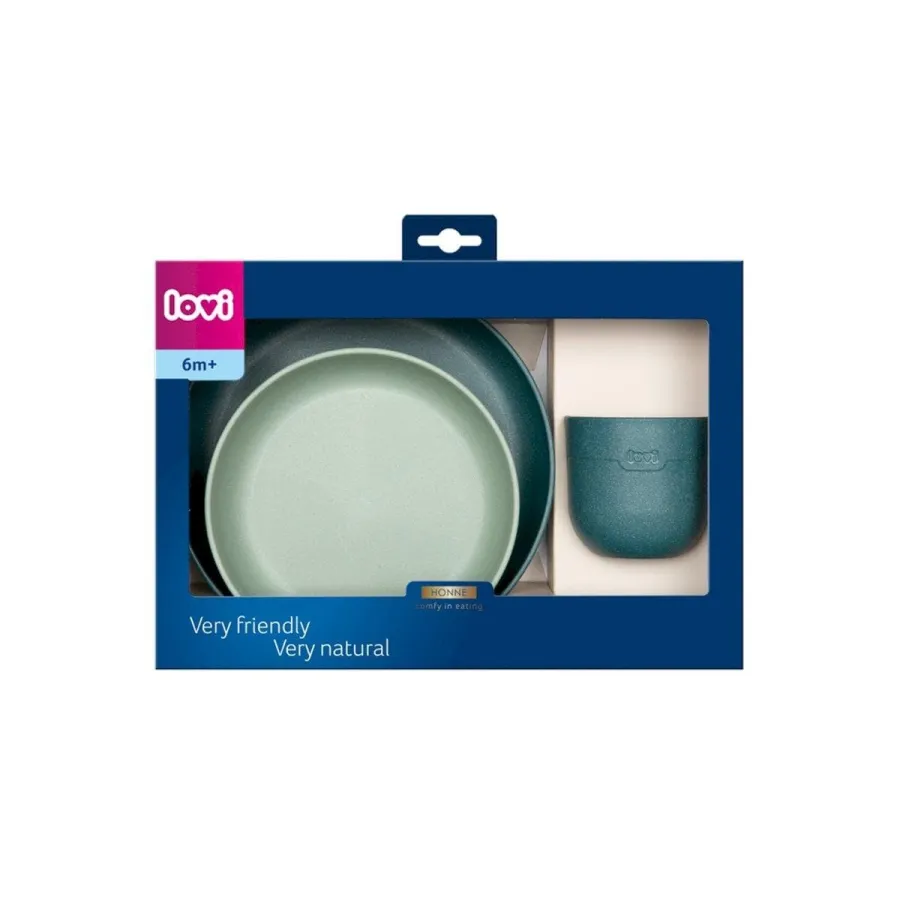 El pack vajilla infantil con vaso de Lovi ,fomenta la autonomía del bebé con seguridad gracias a sus componentes y diseño. Tiene forma ovalada para facilitar su manipulación proporcionando ligereza, adherencia y resistencia.