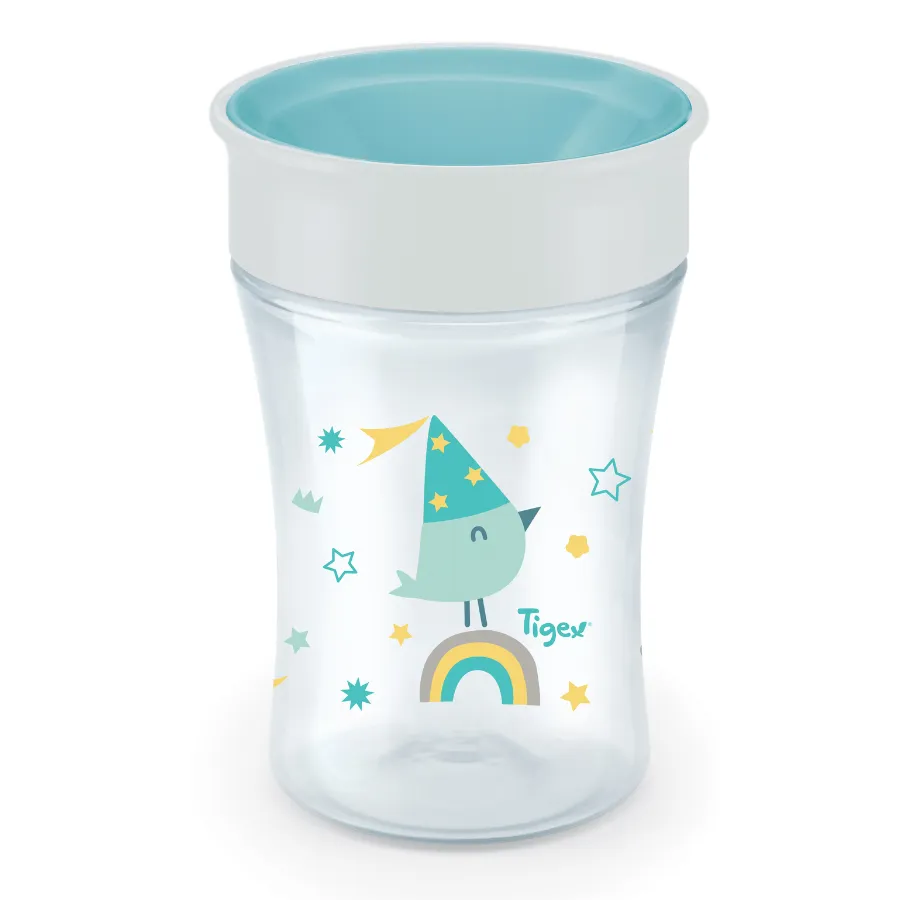 El siguiente paso en la autonomía de tu bebé comienza con el vaso Smart 360º de Tigex. Ideal desde los 9 meses, este vaso sin boquilla le permite beber solo, sin derrames y con total seguridad.